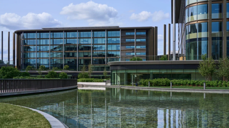 Бизнес-парк включает шесть шестиэтажных офисных корпусов.