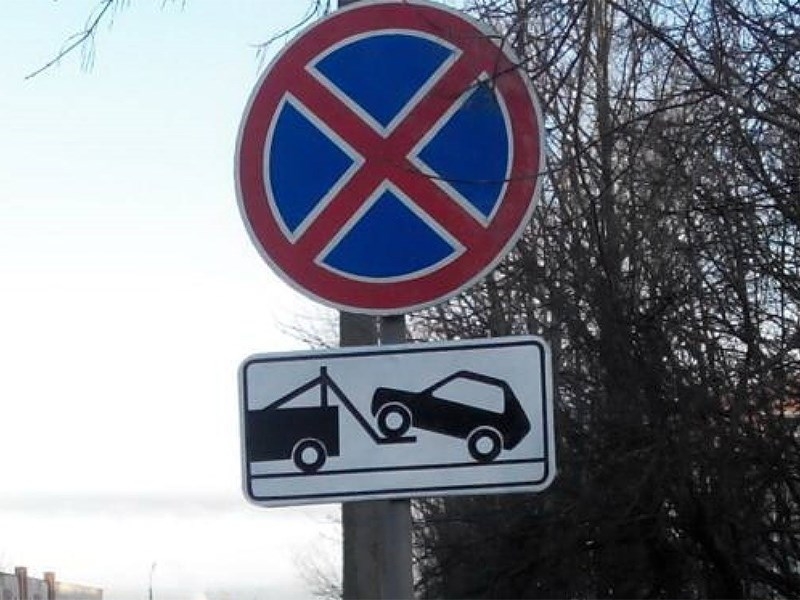 Знак 3.27 «Остановка запрещена» запрещает даже кратковременную остановку автомобиля, а его нарушение влечет штраф в размере 4,5 тыс. рублей (в Москве и Санкт-Петербурге). При этом наличие таблички «Работает эвакуатор» означает, что припаркованный под запрещающим знаком автомобиль может быть принудительно отправлен на штрафстоянку.
